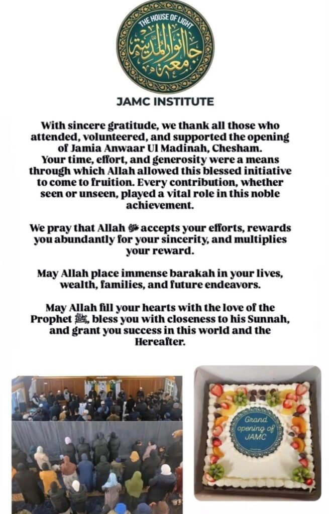 We appreciate your continued support for your institute. JazakAllah Khair.